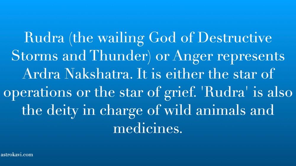 Nakshatra Deity: Rudra, the Lord of Storms Shakti (power to/of…): Effort