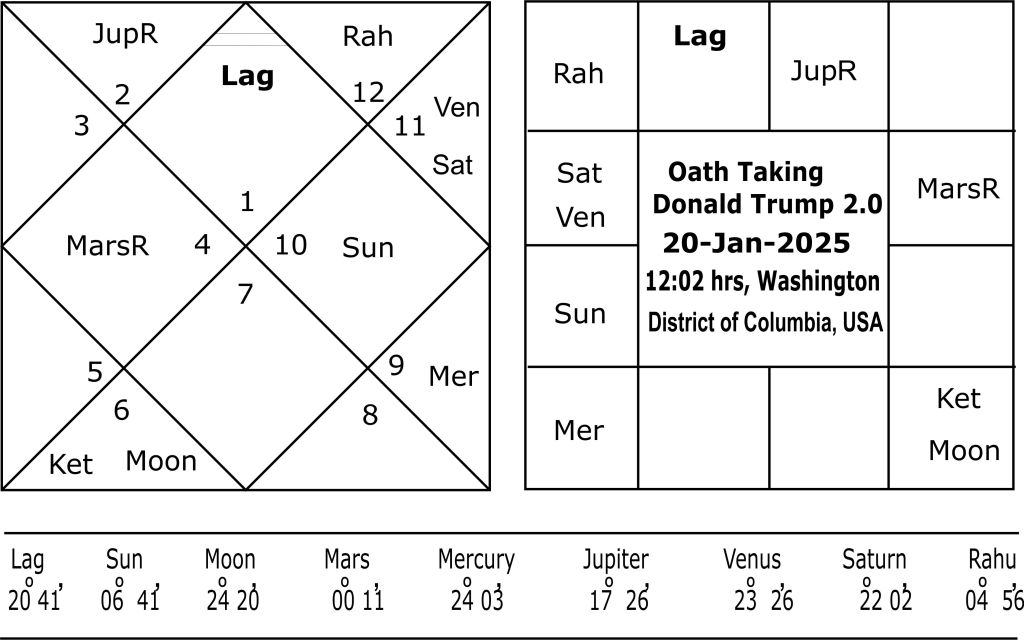 Chart 1. Oath Taking horoscope of Donald Trump 2.0