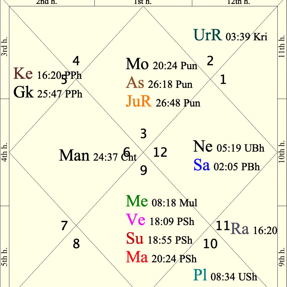 In the India Foundation Chart, Sagittarius falls in the 8th house, a domain associated with hidden forces, covert activities, crises, and weapons. Sagittarius itself signifies arms, ideology, and strategic warfare. This combination indicates that the Government of India is aware of attempts to engineer internal unrest through concealed channels.