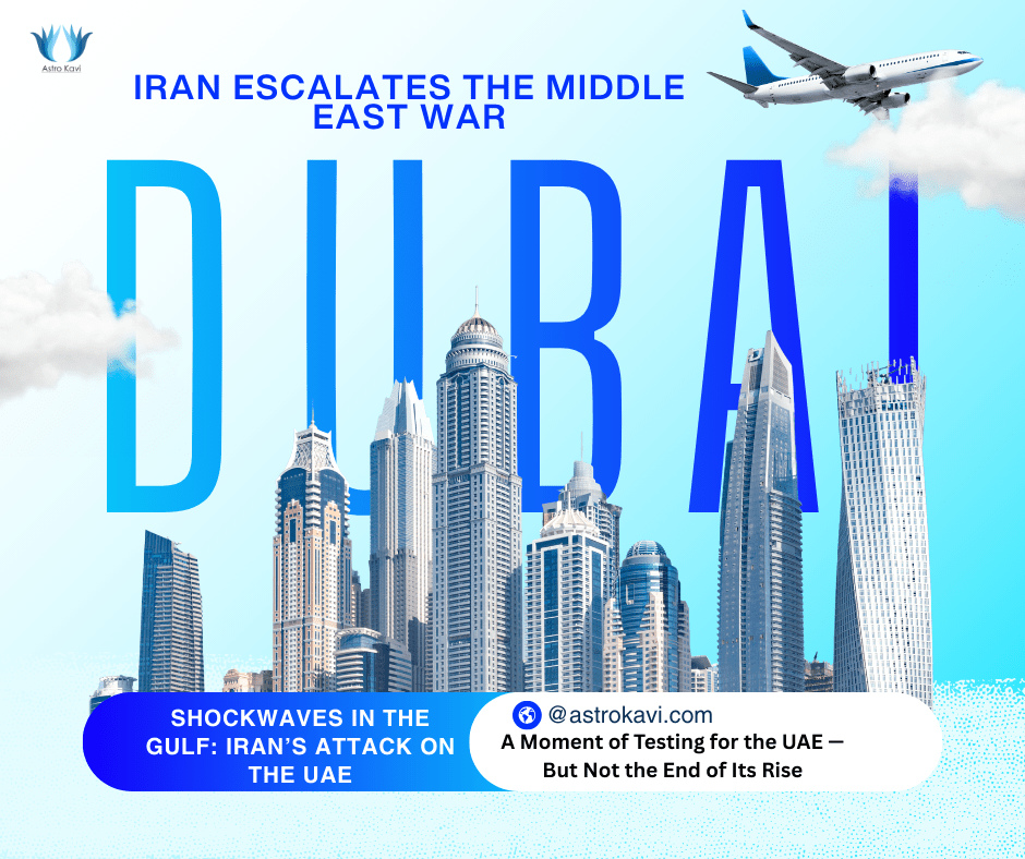 In the UAE chart, the activation of the Saturn–Venus 6-8 axis dasha indicates karmic conflict around power, alliances, and financial interests—turning prosperity hubs like Dubai into unintended flashpoints of geopolitical tension.
