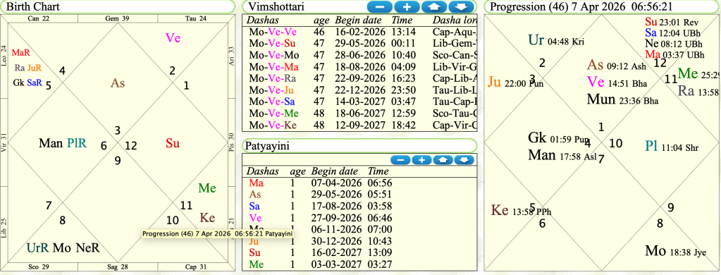 At the same time, Jupiter’s placement in the third house, without strong benefic support, suggests limitations in guidance and communication clarity, potentially intensifying differences in approach. The most striking feature is the conjunction of Sun, Saturn, and Mars in the twelfth house, indicating hidden pressures, behind-the-scenes struggles, and strategic challenges. Despite this, the presence of a strong Muntha ensures that progress and achievements continue, making this a year of navigating internal complexity while steadily moving forward.
